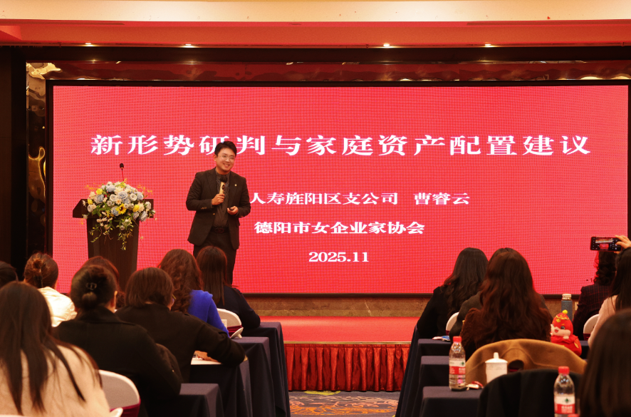 随后,协会会员企业——中国人寿旌阳支公司带来“新形势研判与家庭资产配置建议”专题分享。主讲人曹睿云同志详细解读了新形势下家庭资产配置策略,结合利率下行趋势与家庭风险承受能力,分享短期流动性管理、中长期稳健增值的分层配置方法,为不同阶段家庭筑牢财富安全垫、实现资产保值增值支招。